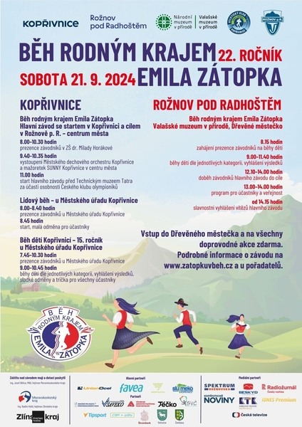 Ve stejný den o téměř 100 kilometrů dál se koná Běh rodným krajem Emila Zátopka. Cíl běhu je ve Valašském muzeu v přírodě v Rožnově pod Radhoštěm, kde bude nachystán bohatý doprovodný program. Závod je určen také pro kategorie dvojic a týmů. Vstup do Dřevěného městečka a na všechny doprovodné akce je zdarma.