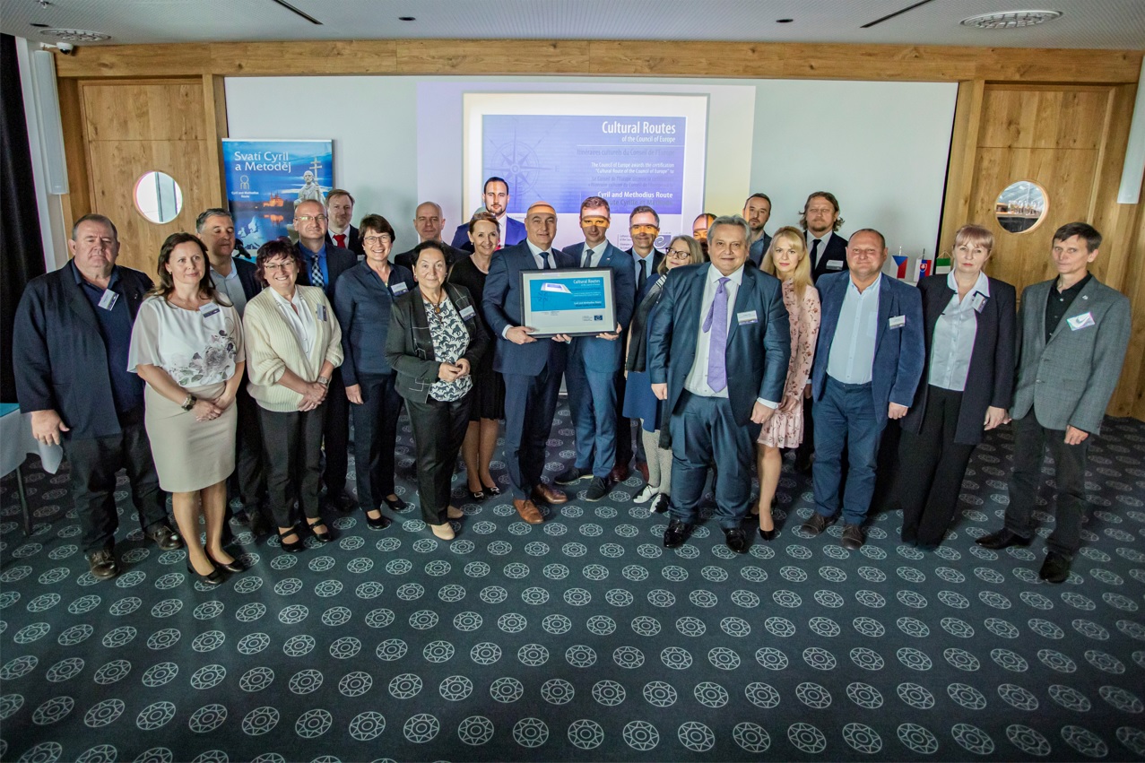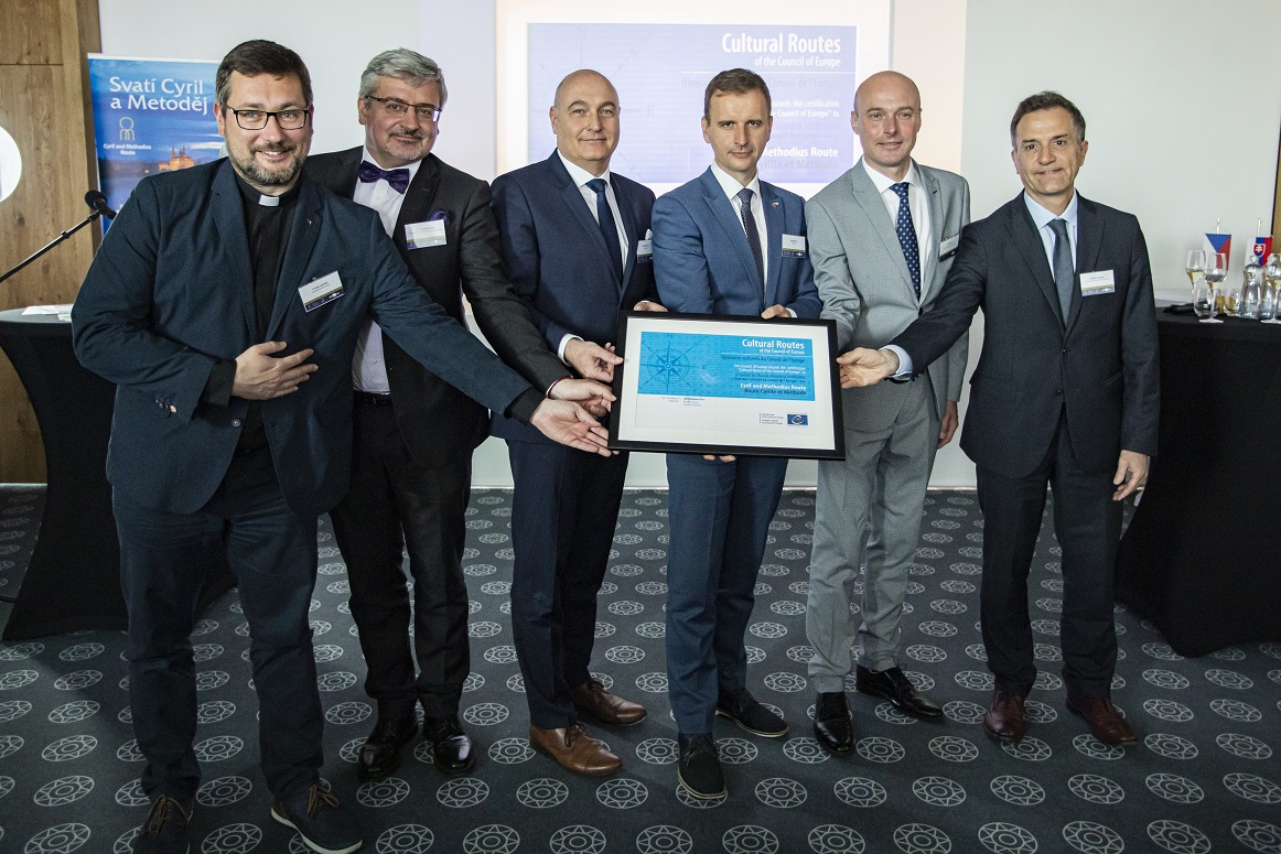 ZLÍN – Certifikát Kulturní stezka Rady Evropy byl slavnostně předán z rukou ředitele Evropského institutu kulturních stezek v Lucemburku pana Stefana Dominioniho představitelům sdružení Evropská kulturní stezka sv. Cyrila a Metoděje a Zlínského kraje. Předání se uskutečnilo během mezinárodní konference pořádané dne 17. 5. 2022 v galerii zrekonstruovaného Obchodního domu ve Zlíně za účasti zástupců Programu Kulturní stezky Rady Evropy, Cyrilometodějské stezky a dalších certifikovaných stezek, významných hostů a partnerů z partnerských zemí Slovenska, Bulharska, Itálie a Lucemburska.
