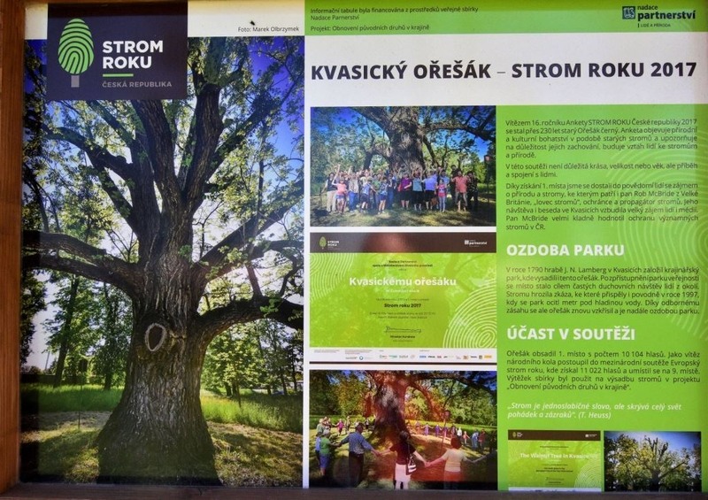 To ale neplatí pro zámecký park, který rozhodně stojí za alespoň krátkou návštěvu. Zámecký park by založen v roce 1790, stromy v něm rostoucí mají tedy stáří nejméně 230 let. Na jejich vzhledu a mohutnosti je to viditelné. Roste zde řada kapitálních stromů, zejména dubů, několik platanů, nejvíce známý je zcela jistě Kvasický ořešák, obrovitý strom (ořešák černý) s obvodem kmene 672 cm. Ořešák se stal v roce 2017 Stromem roku v ČR a jako vítěz národního finále postoupil do evropské soutěže, kde se umístil na skvělém 9. místě.