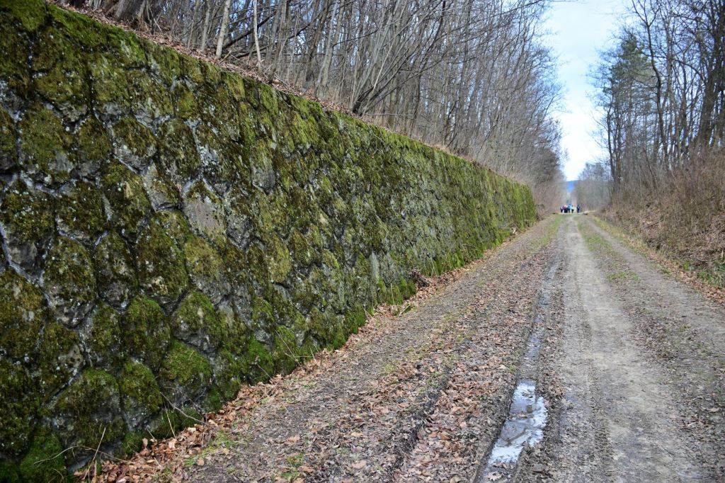V obci Ublo se zastavte u Zemské osy. To je hostinec, kde se zemská osa, dle místních, pravidelně maže. U hostince opusťte značenou turistickou trasu, nechejte jej za zády, přejděte přes silnici do uličky mezi domy. Po 60 metrech odbočte vlevo. To již stojíte na trase původně plánované železnice. Asfaltová cesta vede severozápadním směrem do sousední obce Jasenná, nabízí zajímavé výhledy na okolní kopce, prochází přírodní památkou Průkopa, kde se vyskytují společenstva chráněných rostlin. Po třech kilometrech mírného klesání vás dovede do Jasenné. V obci zabloudit nemůžete, k orientaci poslouží špičatá věž evangelického kostela. U kostela se zastavte u památníku zdejších legionářů, pak přejděte přes silnici na chodník, kde narazíte na modře značenou turistickou trasu vedoucí jihozápadním směrem nejprve kolem hřbitova a poté po náspu nedokončené Baťovy železnice do Vizovic. V Jasenné měla trať přemostit údolí, je to zřejmé od turistického rozcestníku Jasenná – Hřiště.