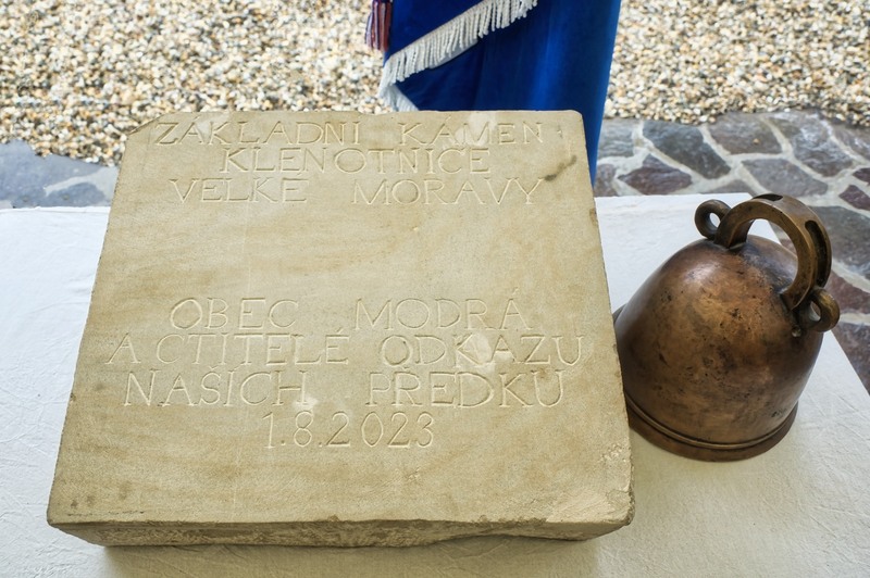 V obci Modrá nedaleko Velehradu byl velehradským kaplanem Jiřím Hebronem požehnán základní kámen výstavby Klenotnice Velké Moravy. Kámen s odkazem modřanských obyvatel bude vpraven do jejího zdiva. Nová, podzemní atraktivita bude postavena ještě letos a otevřena veřejnosti 20. 6. 2024. Návštěvníkům nabídne to nejcennější - nálezy vzácných velkomoravských šperků. Stalo se tak symbolicky 20 let poté, co začala na zelené louce výstavba zdejšího Archeoskanzenu, který připomíná způsob života na Velké Moravě, tedy i v době Konstantina-Cyrila a Metoděje.