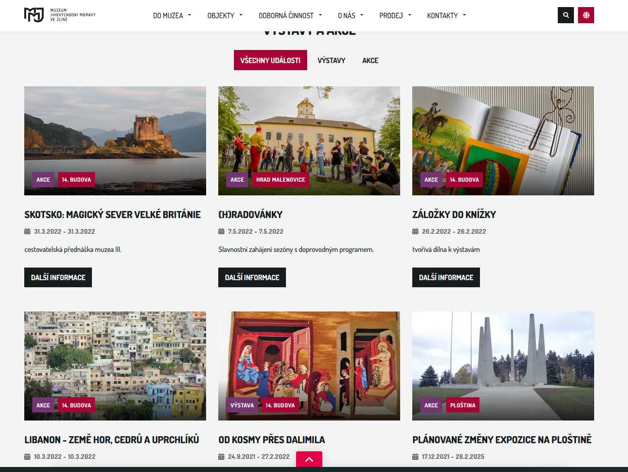 Muzeum jihovýchodní Moravy ve Zlíně spustilo nové webové stránky, na nichž představuje objekty muzea, probíhající výstavy a pozvánky na akce i odbornou činnost muzea.