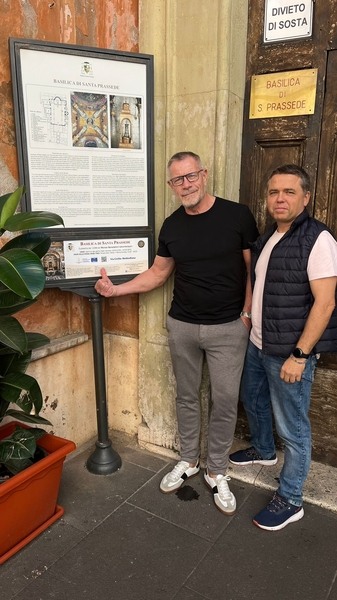 Následně delegace navštívila významné římské baziliky, tematicky spojené s cyrilometodějským dědictvím – papežskou baziliku Panny Marie Sněžné a baziliku sv. Praxedy, která je označena symbolem Cyrilometodějské stezky.