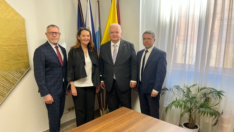 Foto 3 – radní Ivan Láska, ředitelka EKSCM Zuzana Vojtová, velvyslanec J. E. Pavel Svoboda a vedoucí odboru strategického rozvoje Zlínského kraje Milan Filip
