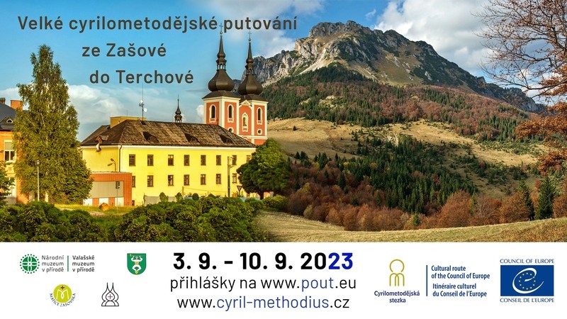 Tisková zpráva sdružení Evropská kulturní stezka sv. Cyrila a Metoděje (EKSCM) a Centrály cestovního ruchu Východní Moravy ZLÍN, 1. 9. 2023 První den nového školního roku - v pondělí 4. 9. 2023 bude zahájeno Velké cyrilometodějské putování ze Zašové přes Beskydy do Terchové na Malou Fatru. Skupinu 30 poutníků povede na cyrilometodějské trase o délce asi 150 km známý propagátor pěšího putování Petr Hirsch. Trasa spojuje čtyři významná poutní místa: kostel Navštívení Panny Marie v Zašové, kapli sv. Cyrila a Metoděje na Radhošti, kostel Panny Marie Matky církve na vrchu Živčáková a kostel sv. Cyrila a Metoděje v Terchové.