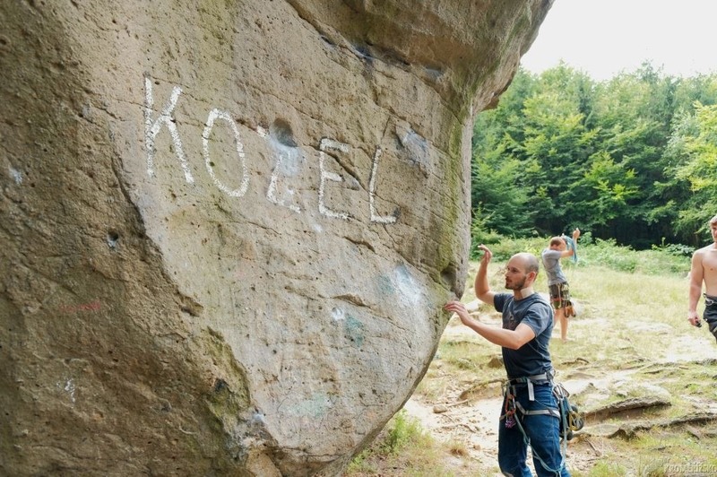 Od Kazatelny cesta krátce (500 m), ale docela prudce klesá lesem ke studánce U Mísy. Čistý ledový pramen přímo vybízí k osvěžení. Od studánky je to pouhý kilometr na Cimburk, ale udělejte si ještě jednu odbočku, a odskočte si 400 metrů po červené značce ke skalnímu útvaru Kozel. Ten bývá často v obležení horolezců, na 22 metrů vysoké členité skále je přes 40 horolezeckých cest. Stojí tu sympatický přístřešek, o víkendech zde skoro pokaždé hoří ohníček a je možné si zde opéct špekáček.