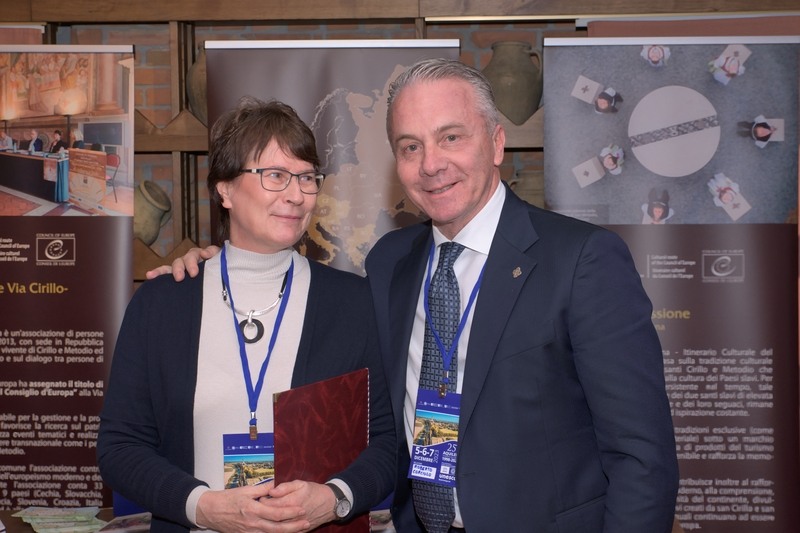 Tisková zpráva sdružení Evropská kulturní stezka sv. Cyrila a Metoděje (EKSCM) a Centrály cestovního ruchu Východní Moravy AQUILEIA, ZLÍN, 14. 12. 2023 Výstava o Cyrilometodějské stezce – Kulturní stezce Rady Evropy byla minulý týden zahájena v italském městě Aquileia v regionu Furlansko-Julské Benátsko. Vernisáž výstavy se uskutečnila 6. prosince při příležitosti konání konference věnované výročí 25 let zápisu Archeologického areálu a patriarchální baziliky v Aquileii na seznam UNESCO. Paní Dana Daňová, předsedkyně Řídicího výboru sdružení Evropská kulturní stezka sv. Cyrila a Metoděje, zde prezentovala, jak Cyrilometodějská stezka využívá mezinárodní spolupráci s dalšími Kulturními stezkami Rady Evropy, jako je Via Francigena, Via Romea Germanica nebo Via Romea Strata. „Před rokem jsme s představiteli města Aquileia, tamější nadace a baziliky uzavřeli v Modré u Velehradu memorandum o spolupráci. Pozvání na oslavy výročí zápisu Aquileie na seznam UNESCO a možnost uvést výstavu o Cyrilometodějské stezce jsou důkazem našich dobrých vztahů a zájmu o aktivní spolupráci,“ řekl Lubomír Traub, předseda sdružení Evropská kulturní stezka sv. Cyrila a Metoděje a náměstek hejtmana Zlínského kraje pro strategický rozvoj, dotace a cestovní ruch.