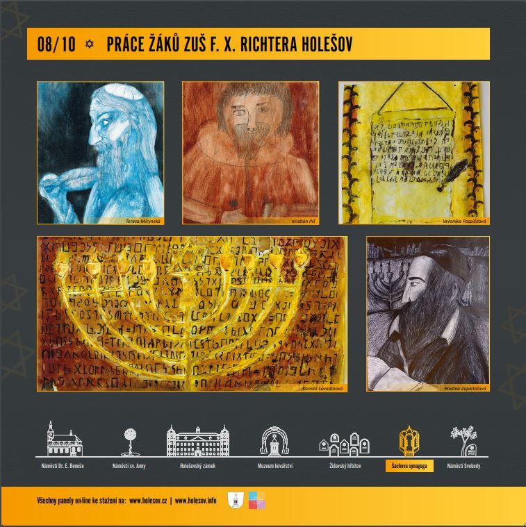 Jedna venkovní výstava se jmenuje „Zázračný rabín Šach a tajuplné židovské město“. Věnuje se osobnosti proslulého rabína Šacha, který v Holešově žil, působil a je pohřben na zdejším židovském hřbitově. V tomto roce uplyne 400 let od jeho narození. Zajímavé informace obsahuje výstava i o dalších významných lidech z holešovské židovské komunity. Také je možné si přečíst několik židovských pověstí. Osvěžením jsou díla studentů Základní umělecké školy F. X. Richtera inspirovaná židovskou tématikou.